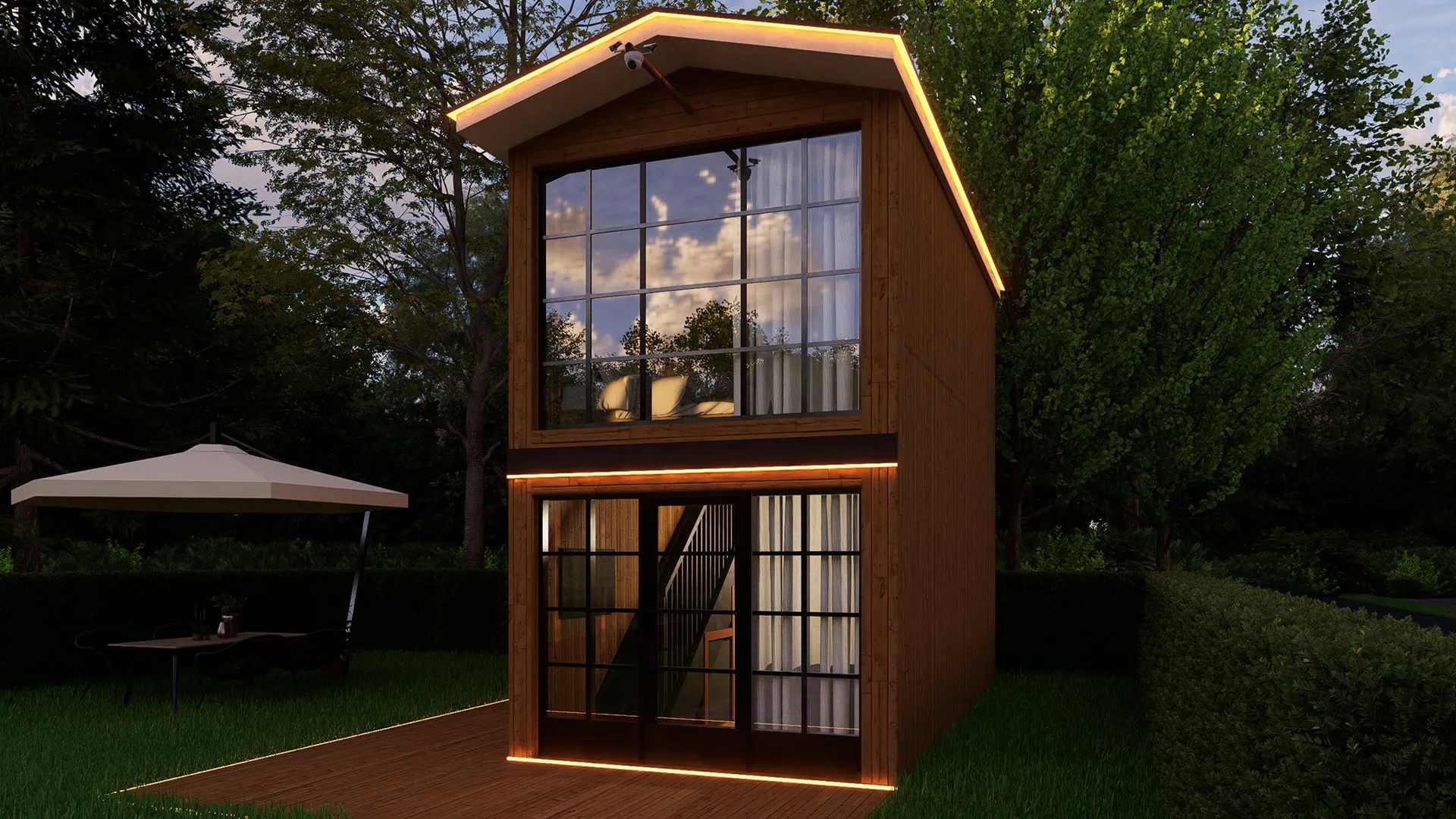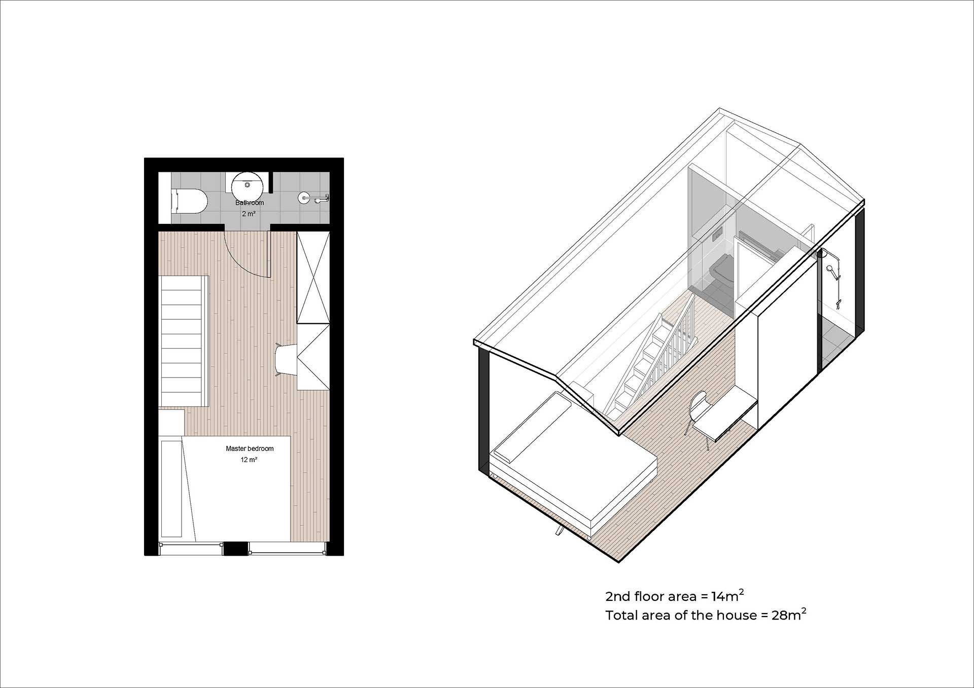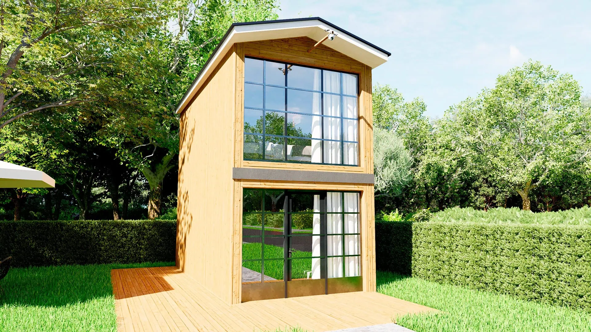 Funkční a stylový dvoupodlažní modulární dům o celkové ploše 44 m², složený ze dvou modulů. Má dvě útulné a promyšlené místnosti a klasickou sedlovou střechu.