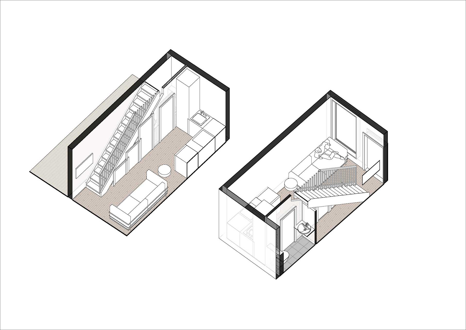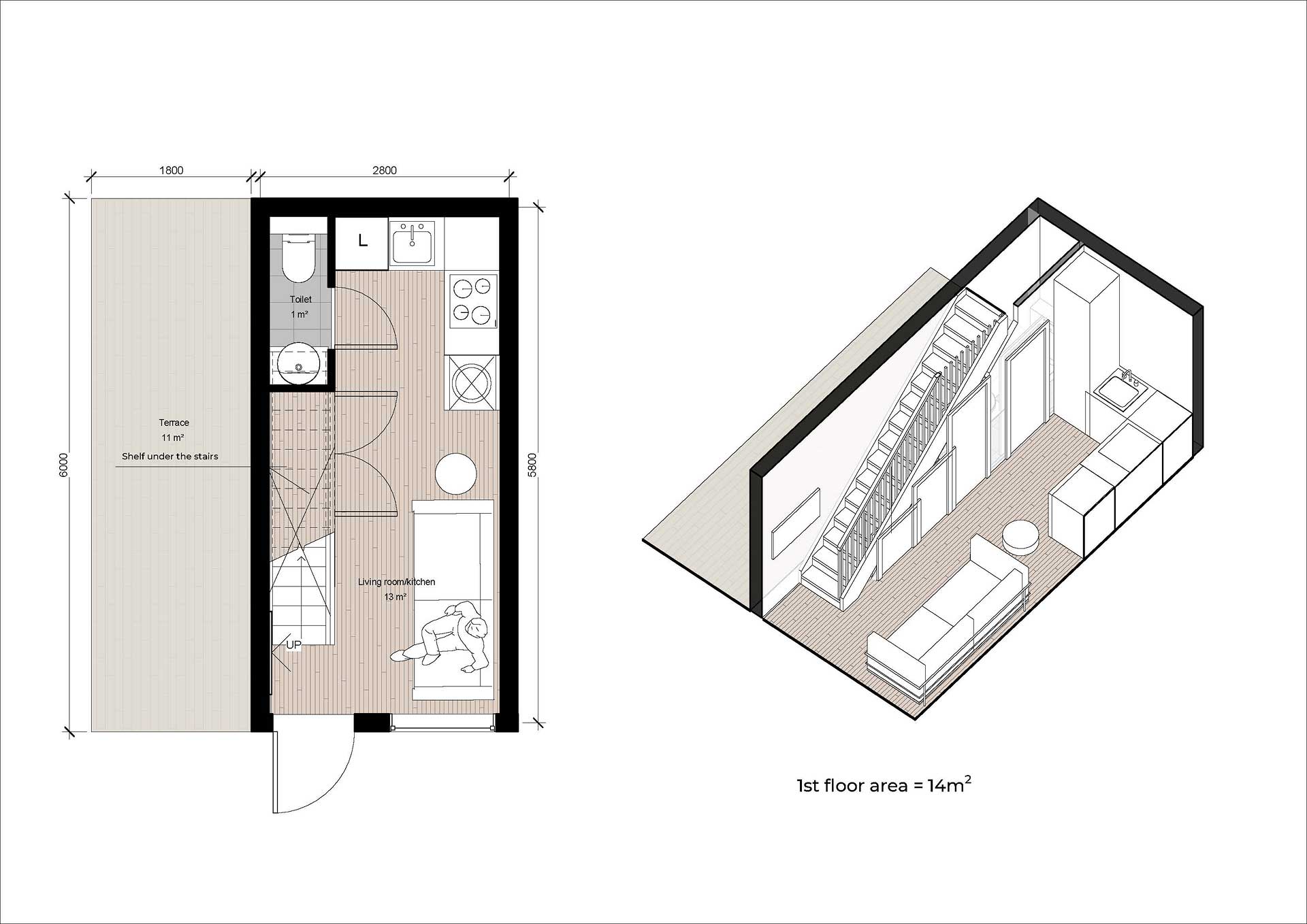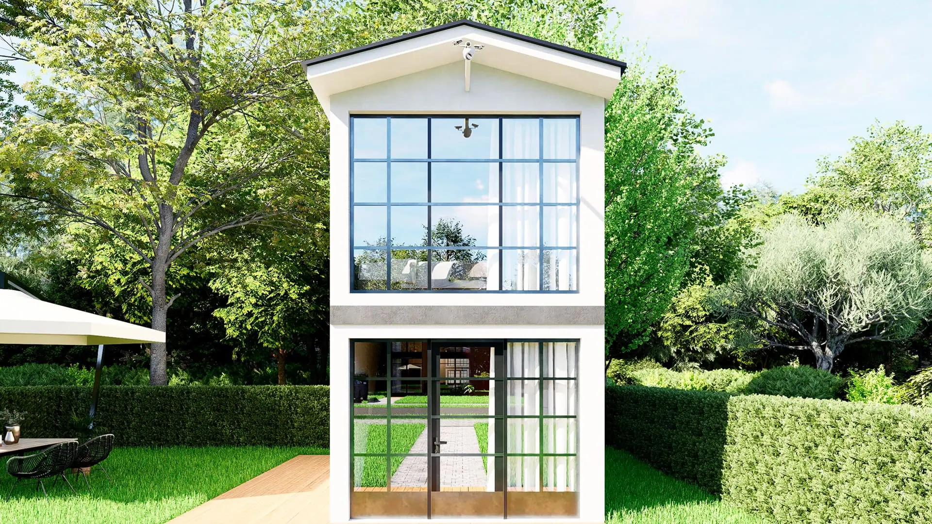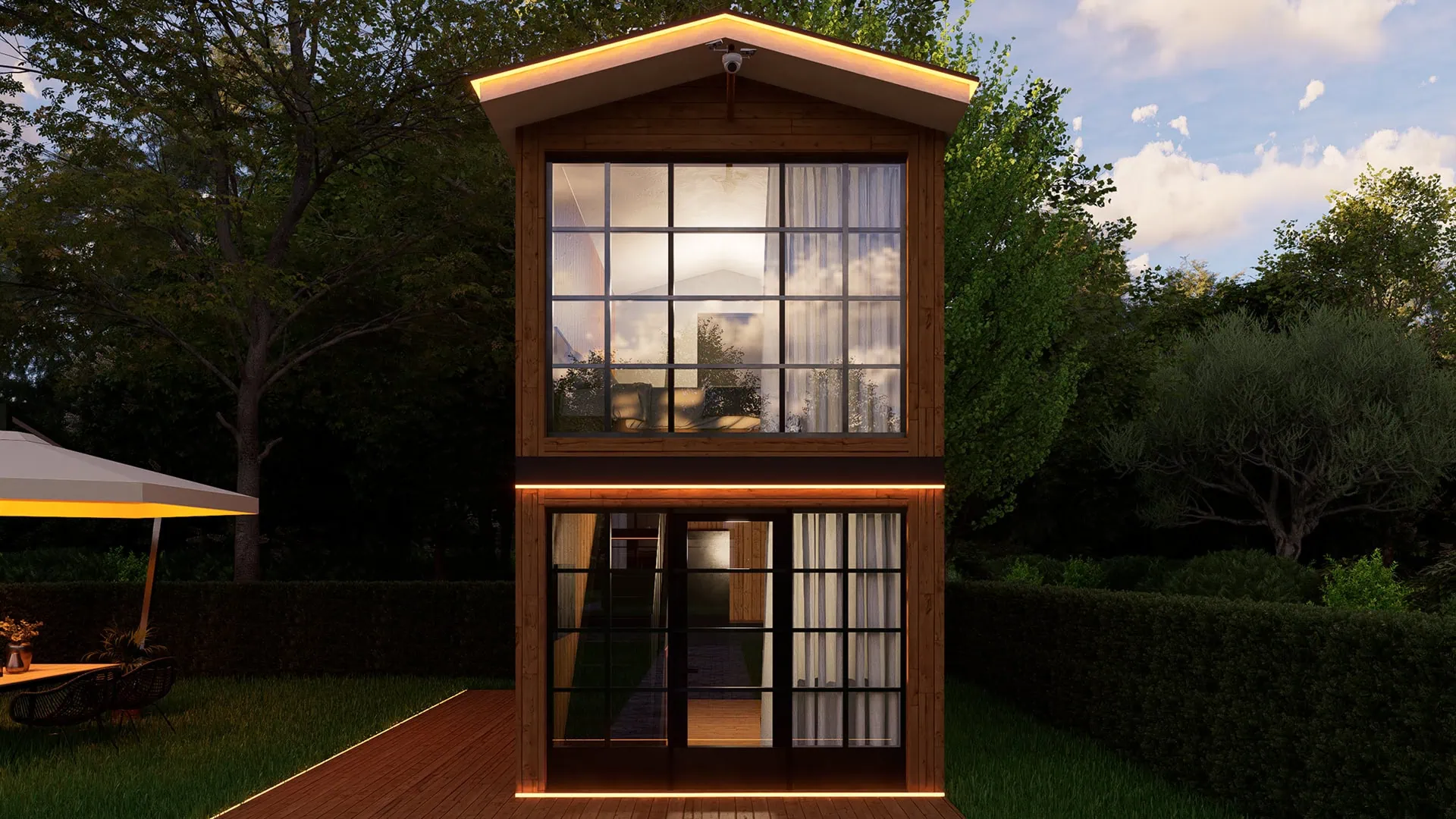 Funkční a stylový dvoupodlažní modulární dům o celkové ploše 44 m², složený ze dvou modulů. Má dvě útulné a promyšlené místnosti a klasickou sedlovou střechu.