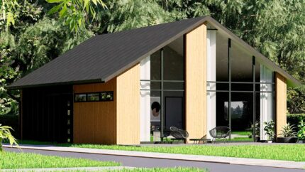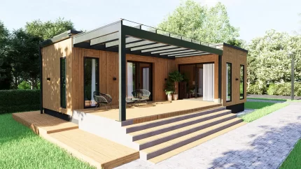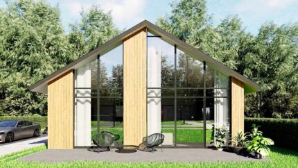 Funkční a stylový jednopodlažní modulární dům o ploše 60,84 m², složený ze dvou modulů. Má tři útulné a promyšlené místnosti a klasickou sedlovou střechu.