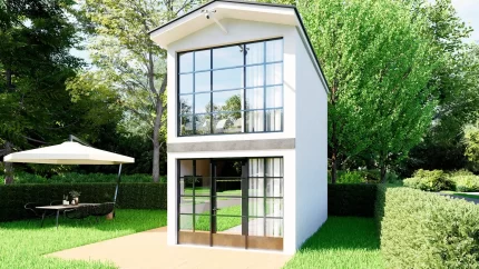 Funkční a stylový dvoupodlažní modulární dům o celkové ploše 44 m², složený ze dvou modulů. Má dvě útulné a promyšlené místnosti a klasickou sedlovou střechu.